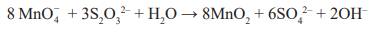 5SO32− + 2MnO4− + 6H+→ 2Mn2+ + 3H2O + 5SO42-