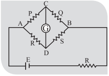 When current through the galvanometer is zero (null point or balance point) P / Q = R / S.