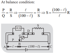 • Balanced position of meterbridge is not affected on interchanging the position of battery and galvanometer.